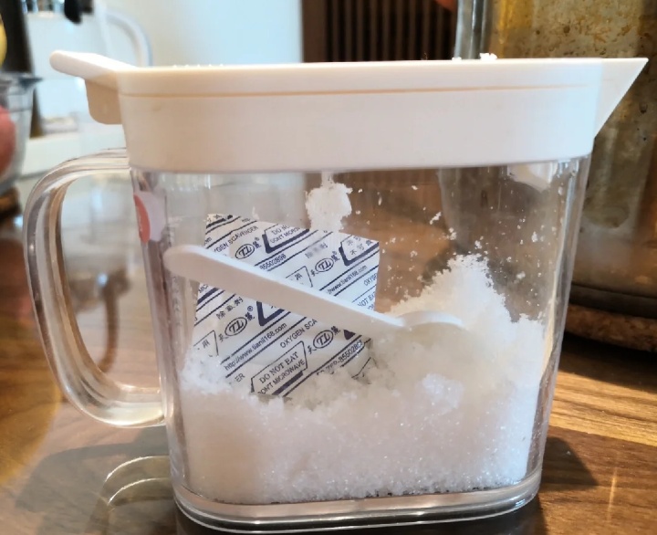 尤其是盐和糖,这一类容易结块融化的调料,一定要用干燥剂保持干爽哦。