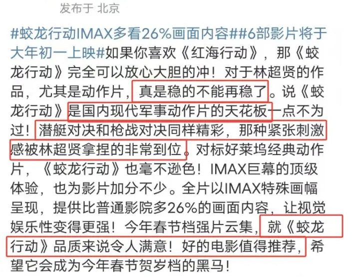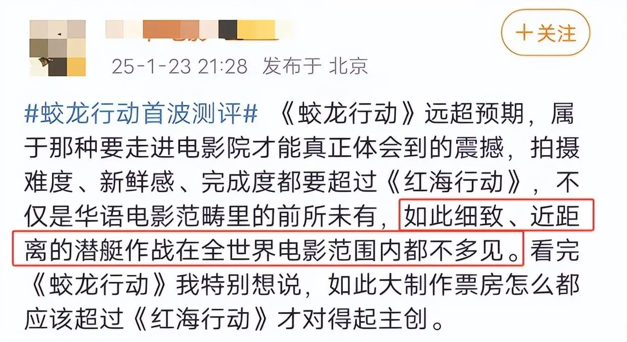正是因为以上的种种优点,所以很多人都表示看好《蛟龙行动》超越《红海行动》,能在今年的春节档有一个漂亮的成绩。