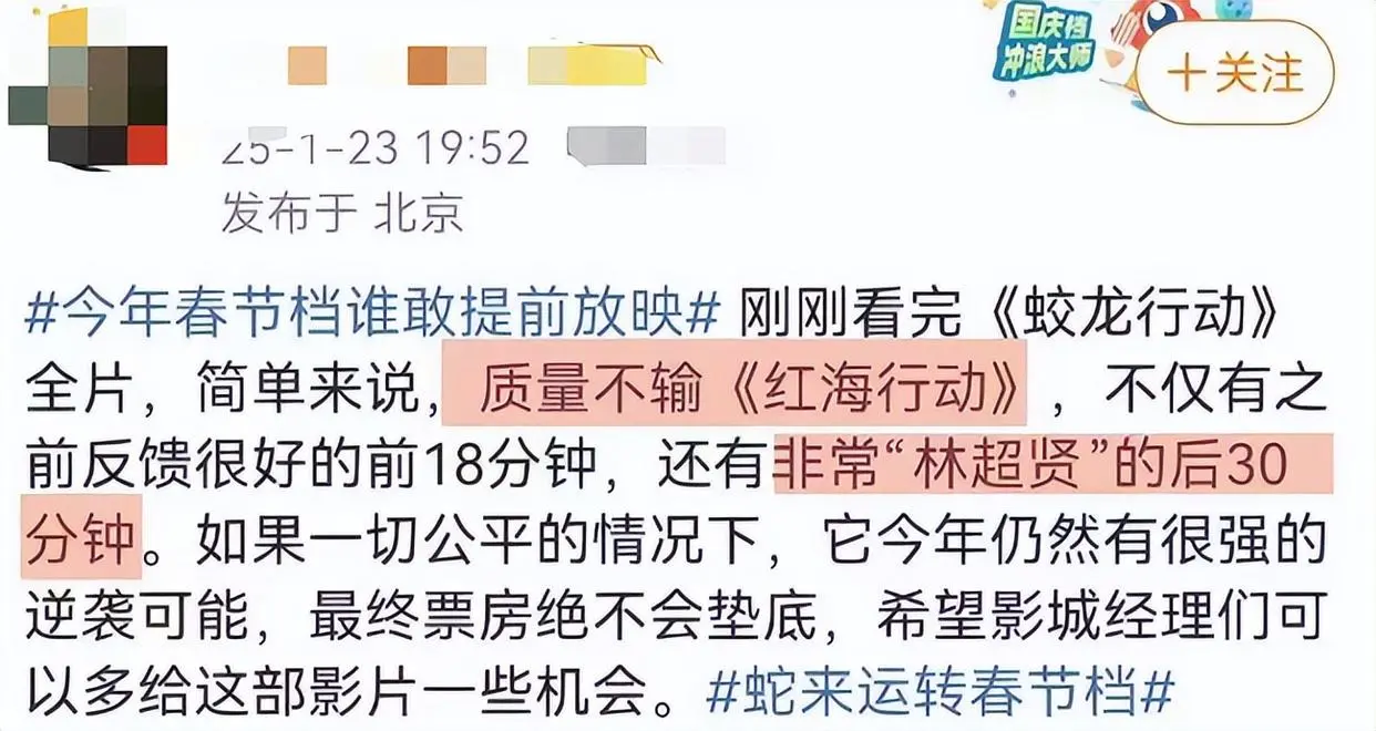 但今年这个难题解决了,因为有一部春节档大片无惧被观众提前“审判”,不仅率先举办了看片会,也开启了点映,观众不用等到年初一才知道电影好不好看,因为这部影片的第一波口碑已经新鲜出炉并迅速引爆全网!