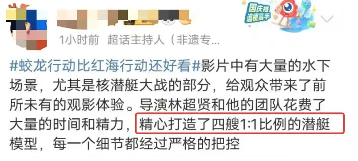 这是全世界首部以核潜艇为主角的电影,看过电影的人表示电影里的核潜艇戏很多,影片百分之七八十的内容都发生在水下,并不是一个简单的噱头,而是真正的核潜艇之战。这也意味着中国的军事电影开辟了全新的赛道,电影里很多东西肯定是观众之前没见过的!